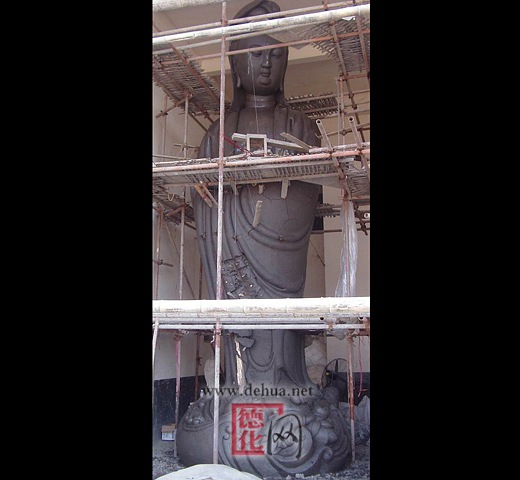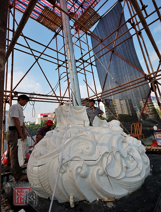 圖為瓷都廣場(chǎng)主題雕塑——巨型陶瓷“渡海觀音”已經(jīng)開(kāi)始安裝調(diào)試