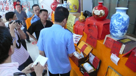 工商執(zhí)法人員對假冒景德鎮(zhèn)瓷器店進(jìn)行查處