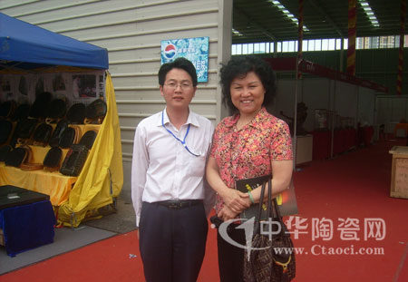 左:為中華陶瓷網(wǎng)業(yè)務(wù)經(jīng)理賴成義,右:為大華民族文化藝術(shù)博物館館長(zhǎng)許可女士