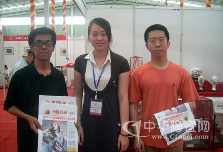 中華陶瓷網(wǎng)參展人員(中) 《沈陽(yáng)日?qǐng)?bào)》五愛(ài)時(shí)尚周刊主任蒼賡(左) 《沈陽(yáng)日?qǐng)?bào)》徐記者(右)