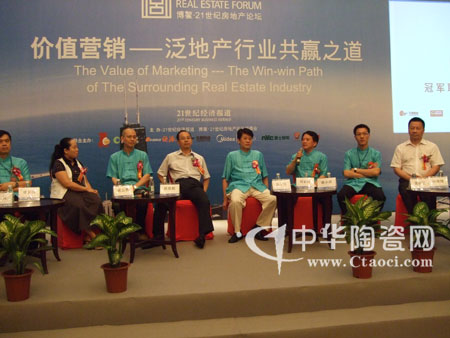 在該論壇上,何新明表示,東鵬陶瓷通過創(chuàng)新產(chǎn)品,通過優(yōu)質(zhì)品質(zhì),通過一流服務(wù)為客戶創(chuàng)造價(jià)值。從96年率先引進(jìn)玻化磚并通過開創(chuàng)暢銷至今的經(jīng)典產(chǎn)品“金花米黃”,引領(lǐng)了行業(yè)“一片黃”的熱潮;在2000年通過天山石拋光磚帶動(dòng)行業(yè)的“一片白”新潮流,在07年?yáng)|鵬開創(chuàng)具有國(guó)際專利的洞石帶領(lǐng)行業(yè)“一片洞”,去年推出納福娜洞石,09年則演變成行業(yè)“一片福”,通過創(chuàng)新帶動(dòng)整個(gè)行業(yè)技術(shù)的發(fā)展,也領(lǐng)導(dǎo)了行業(yè)新產(chǎn)品的潮流。因此,何新明認(rèn)為,房地產(chǎn)跟陶瓷、家具等泛家居行業(yè)是唇齒相依的關(guān)系,東鵬高價(jià)值的產(chǎn)品自然提升了房地產(chǎn)空間的價(jià)值。他還指出以東鵬陶瓷為代表的冠軍聯(lián)盟給開發(fā)商和消費(fèi)者可以帶來(lái)更大的價(jià)值。“如同一套優(yōu)質(zhì)的名牌西裝能夠提升一個(gè)人的氣質(zhì)和品位,我們的陶瓷和我們冠軍聯(lián)盟的家居類產(chǎn)品就像是房地產(chǎn)產(chǎn)品的優(yōu)質(zhì)名牌西裝,我想通過我們創(chuàng)新的產(chǎn)品,也通過我們6家冠軍企業(yè)品牌的聯(lián)盟來(lái)提升我們房地產(chǎn)的價(jià)值,來(lái)推動(dòng)泛地產(chǎn)的價(jià)值是完全可以做到的”,何新明言簡(jiǎn)意賅,信心十足。