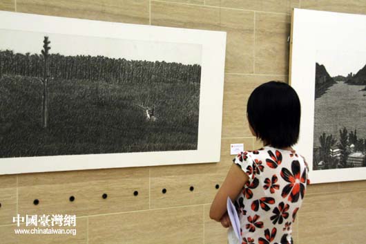 6月19日,《臺(tái)灣陶藝家李茂宗陶雕展》與《臺(tái)灣藝術(shù)家倪再沁水墨畫展》在中國美術(shù)館開幕,民眾在水墨畫前駐足。(中國臺(tái)灣網(wǎng) 鐘寶華 攝)