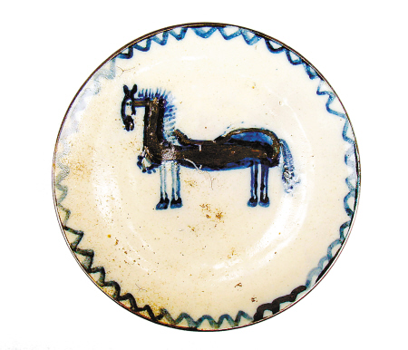 渭北青花還有青花結合鐵銹花繪畫的傳統(tǒng),另外陳爐窯雙色釉貼紙繪畫青花最有地方特色,它以香黃釉為地,在開光形式中采用潔白明亮的白釉,再加青花和黑彩繪出紋樣,這種香黃加白雙色釉飾以青花加黑花紋樣的品種,是陳爐窯的一種獨創(chuàng)。其裝飾風格匯集了濃重醒目的色釉和淡雅青花畫風,深受清末、民國玩家們的喜愛。