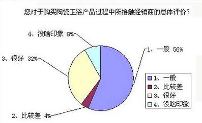在"購買陶瓷衛(wèi)浴產(chǎn)品的途徑"選項中,57%的網(wǎng)友選擇了去專賣店,24%的網(wǎng)友去建材超市,還有18%的網(wǎng)友選擇建材批發(fā)市場,可以看出,網(wǎng)友更傾向于到比較專業(yè)的賣場去選購陶瓷衛(wèi)浴產(chǎn)品,專賣店因為專業(yè)性得以脫穎而出。有業(yè)內(nèi)人士也表示,應(yīng)該把專賣店店面形象作為評價經(jīng)銷商的標(biāo)準(zhǔn)之一。
