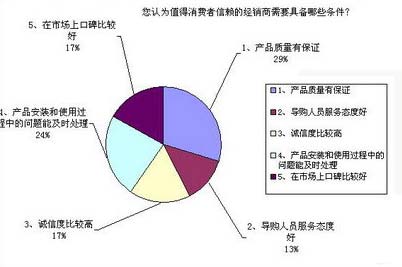 總結(jié)起來,網(wǎng)友們所信賴的經(jīng)銷商必須具備以下條件:第一,經(jīng)營的產(chǎn)品品質(zhì)有保證;第二,服務(wù)及時;第三,誠信度高,口碑好;第四,導(dǎo)購人員服務(wù)態(tài)度好。總的來看,都是最基本的要求。