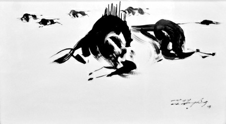 李忠良瓷板畫《奔牛圖》
