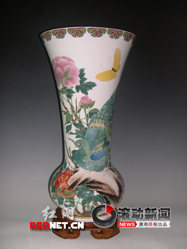 (剛剛復(fù)制出爐的株洲民間國寶“釉下五彩鳳尾尊”。)