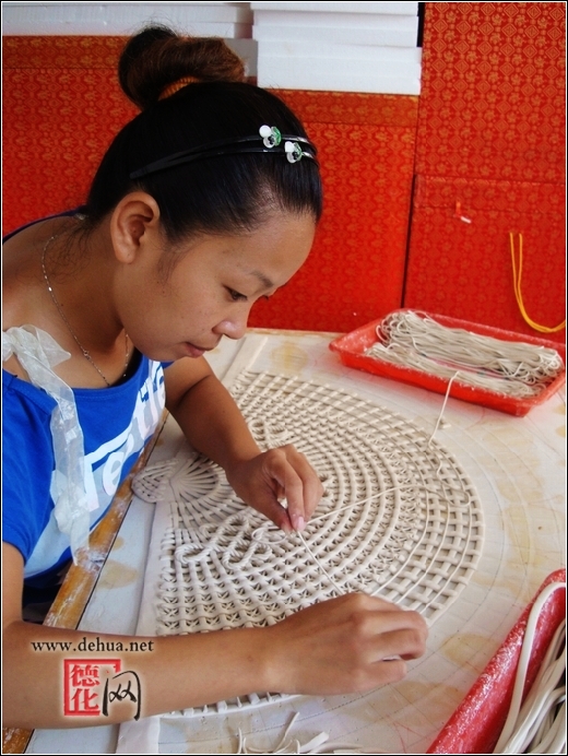 聽說過紙扇、絹扇、木扇,極少聽到有瓷做的扇子,能扇動嗎?當(dāng)看到瓷扇時,真的有想將其拿起來搖曳扇風(fēng)的念頭。打開的扇形,雖然無法隨意折疊,但這樣的一把扇子,將它擺在桌面,掛在中堂,散發(fā)著儒雅氣質(zhì)。扇歷史悠久,品種繁多。而瓷扇,精于制作巧奪天工,采用晶瑩玉潤潔白無瑕素稱的中國白的德化瓷土作原材料,大膽使用了非常涓細(xì)的瓷條加以竹編手法來編織和體現(xiàn),用現(xiàn)代瓷編把古代文明和現(xiàn)代藝術(shù)承接起來,追求新時代的形式美感,格調(diào)高雅、意境深遠(yuǎn)的效果,創(chuàng)造出了純手工編織的瓷扇。整個瓷扇作品縝密圓潤、細(xì)柔堅致、線條流暢、手工烙印強烈。