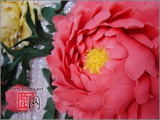 “莫認(rèn)東籬閑采掇,粘屏聊以慰重陽。”假以亂真的菊花、雍容富貴牡丹花、傲雪寒梅枝綻蕾,各式各樣的花朵盛放在一把展開的白色瓷扇上,引來一聲聲的驚嘆。在鄭麗玲的“玲巧瓷藝”工作室內(nèi),來訪者對著眼前精美工藝贊嘆不已。