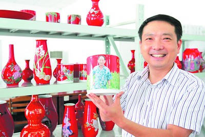 作為中國(guó)紅高溫陶瓷發(fā)明人,尹彥征剛剛完成慶祝新中國(guó)60周年毛澤東系列紅瓷作品創(chuàng)作。隨后,他特約設(shè)計(jì)的首件彩繪“雜交水稻之父”袁隆平人物畫(huà)像的中國(guó)紅高溫瓷器,日前也順利完成。