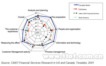 加拿大的銀行一早就認識到了客戶關系的真正價值。所以除了善于管理自己的資金外,加拿大銀行同樣高度關注客戶忠誠度與客戶體驗問題。在一個客戶管理行為與動機的相互比較分析中Teradata (2001) 我們發(fā)現(xiàn)加拿大的銀行在價值主張的扎實性、人員管理和技術使用上都要優(yōu)于美國銀行,因而也創(chuàng)造了更積極的客戶體驗。