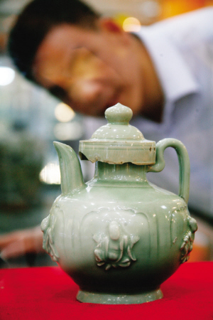 三個月里,承辦方對寶安藏友發(fā)起了總動員,從“海選”到“精選”,一路走過來,承辦方不得不感嘆:“寶安收藏水很深”“檔次高”是業(yè)內(nèi)人士對這次展覽的一致評價(jià),“價(jià)值上百萬的青銅器在這里不罕見,觀賞石基本上十萬以上,而最貴的要屬價(jià)值上千萬的瓷器‘汝窯天青洗’和已成‘孤品’的五代耀州窯把壺。”所謂孤品,就是只此一件,這世界上再沒有同品類的藏品。