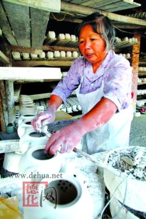 德化瓷土藏量豐富且質(zhì)地優(yōu)良,只要粉碎磨細(xì),不用其他原料,就可以制胚燒制瓷器。