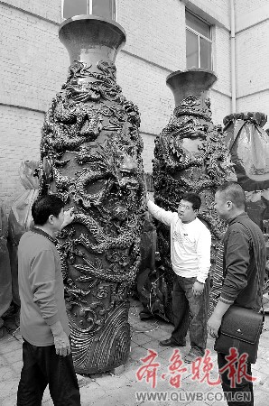 中國(guó)網(wǎng)·濱海高新訊 世界上最大的陶瓷龍瓶17日在淄博市淄川區(qū)燒造成功,該瓶高5米、最大直徑1.8米、重5噸,取名“江山永定”,由山東淄博辰浩陶瓷藝術(shù)研究設(shè)計(jì)院制作,采用傳統(tǒng)的制陶工藝,在窯爐內(nèi)雕塑而成。 劉振澤 閆盛霆 王恒 攝影報(bào)道