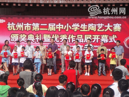 2009年9月25日上午,“塑我中華風(fēng)采”杭州市第二屆中小學(xué)生陶藝大賽成功落下帷幕,頒獎典禮暨優(yōu)秀作品展開幕式在杭州南宋官窯博物館舉行。杭州市園文局副局長王宏偉、是文明辦未成年處處長康志友、市教育局宣傳處處長張志龍等相關(guān)領(lǐng)導(dǎo)以及獲獎師生出席了本次頒獎典禮。