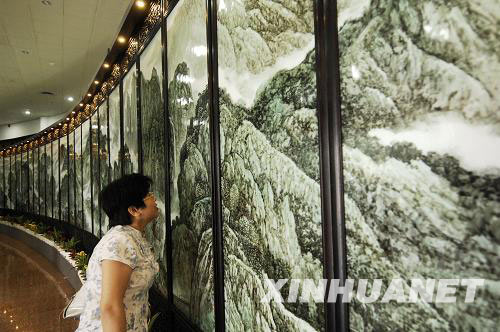 國(guó)慶長(zhǎng)假期間,為國(guó)慶獻(xiàn)禮的巨幅瓷板畫《西江攬勝圖》在南昌江西省博物館展出,吸引了大批觀眾前來欣賞。江西省內(nèi)11位國(guó)家級(jí)工藝美術(shù)大師和幾十位省級(jí)工藝美術(shù)大師共同創(chuàng)作的這件作品由60塊高1.8米、寬0.6米的瓷板畫構(gòu)成,鑲嵌于紅木框架中,寓意新中國(guó)60華誕!段鹘瓟垊賵D》展現(xiàn)了當(dāng)代江西的壯麗河山,融合了自然山水、名勝古跡和經(jīng)濟(jì)開發(fā)區(qū)、高速公路、大型企業(yè)等多種景觀。