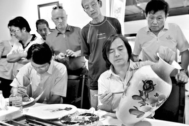 傅國林 首屆“陶藝非凡”大師作品展日前在豫園舉行。中國工藝美術(shù)大師賴德全攜手寧勤征、涂翼報、朱正榮、劉偉等陶瓷藝術(shù)大師齊聚豫園華寶樓,現(xiàn)場表演瓷畫技藝,并共同創(chuàng)作了一幅瓷板作品,將陳列在上海世博園的豫園商城展區(qū)內(nèi)。