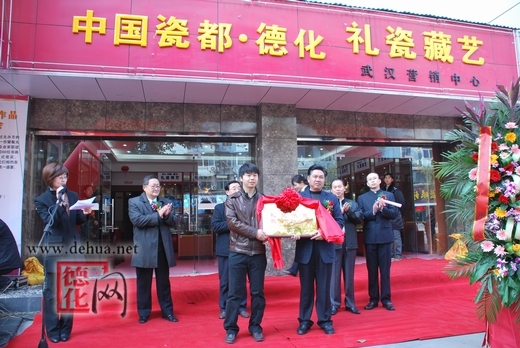 縣委常委、宣傳部長、教育工委書記、中國瓷都德化品牌宣傳工作領(lǐng)導(dǎo)小組常務(wù)副組長涂健圻,縣政府副調(diào)研員、中國瓷都德化品牌宣傳工作領(lǐng)導(dǎo)小組副組長黃發(fā)建,重慶市工藝美術(shù)協(xié)會副會長何發(fā)美,武漢市江岸區(qū)總工會主席呂和平,成都市工藝美術(shù)公司董事長洪星等三城市的有關(guān)部門負(fù)責(zé)人、社會各界人士以及中國新聞社重慶分社、重慶晚報、湖北電視臺、武漢教育電視臺、長江商報、四川電視臺、成都電視臺、四川日報等三地的主要媒體記者分別出席這三個營銷中心的授牌宣傳活動, 涂建圻為三地的營銷中心授牌,黃發(fā)建在三地營銷中心授牌儀式上致辭。