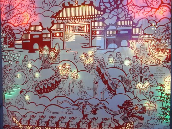 值得一提的是,大型瓷板畫首次運(yùn)用了動(dòng)靜結(jié)合的形式,靜:觀瓷板畫,神似剪紙和窗花的釉下雕花映入眼簾,產(chǎn)生強(qiáng)烈的視覺沖擊;動(dòng),選用龍舟、粵劇、醒獅等多種代表性的效果,加上燈光對(duì)水晶玲瓏和骨瓷瓷板的透光作用,整個(gè)瓷板鮮活起來,仿佛有潺潺的龍舟劃水聲、有粵劇的經(jīng)典唱段、還有醒獅當(dāng)中讓人警醒的鑼缽聲,各種聲效有條不紊的進(jìn)行,給人以身臨其境的震撼和享受。