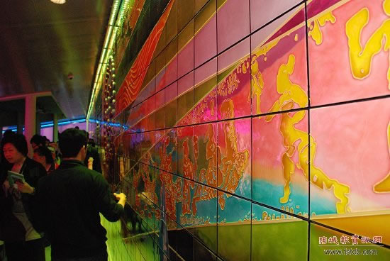 除了這幅壁畫,河南館通道上和外墻中隨處可見不同風格的瓷瓶陶罐,記者在現(xiàn)場采訪了河南省參與2010年上海世博會組委會辦公室聯(lián)絡員、中國國際貿(mào)易促進委員會河南省分會雷保平處長,他表示這次壁畫的設計和展品的選擇都是為了配合河南“國之中?城之源”的主題,反映河南歷史的厚重的文化和現(xiàn)代的繁榮,“中國有5大名瓷中的官瓷、汝瓷、汝瓷都在河南,世博會河南館除了汝瓷每種都有幾件作品,此外還有鄭商瓷和刻字瓷器等。
