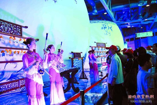 江西館,青花陶瓷樂團(tuán),古香古色十足。