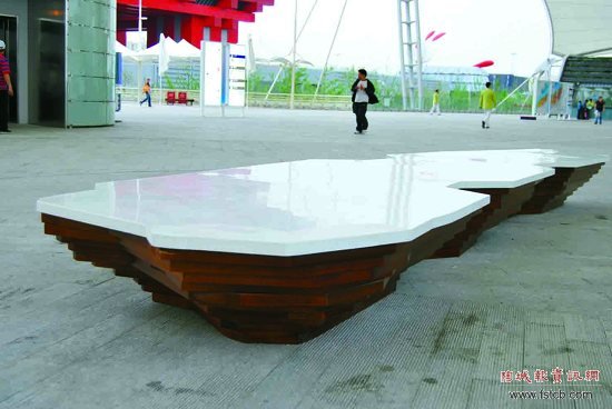 世博軸觀景平臺(tái)上的巨無霸陶瓷休息椅。