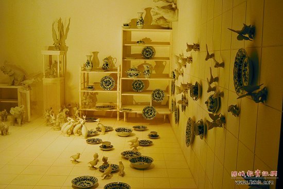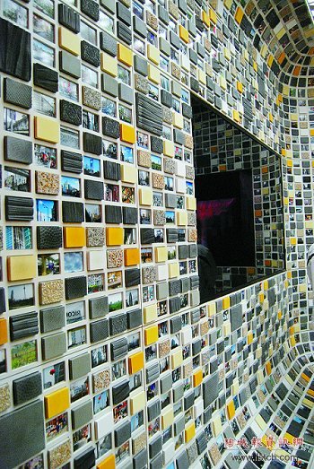 法國館。通過對馬賽克磚的藝術(shù)組合與加工,形成了別有韻味的展示一景。