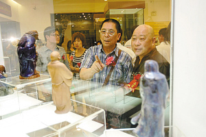 在展覽現(xiàn)場(chǎng),最引人的是石灣公仔大師、今年74歲高齡的中國工藝美術(shù)大師劉澤棉的作品。早前,劉澤棉大師曾為上海世博會(huì)中國館石灣公仔展區(qū),特別制作了一尊橫眉怒目的金剛雕像,被人尊稱為石灣公仔界的“世博大師”。而本次何漢輝展出的是20多年前大師的另外一件作品,一尊傳神的鐘馗雕像。