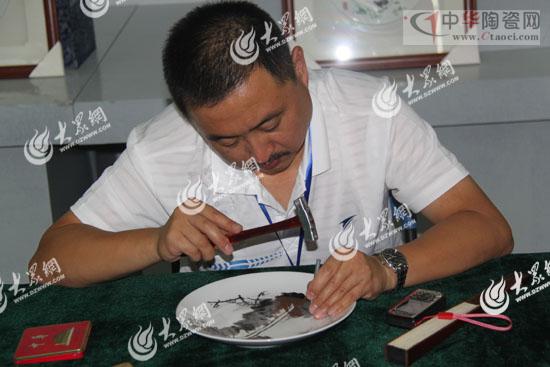 一位刻瓷大師正在展示刻瓷絕活