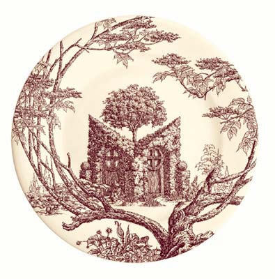 此套餐瓷中的21件單品各自繪有不同圖案—隨意生長的樹枝和精心修剪的園藝植物、蕨類植物交疊在一起,構(gòu)建出一幅幅迷人的風(fēng)景畫卷。