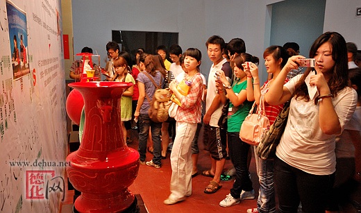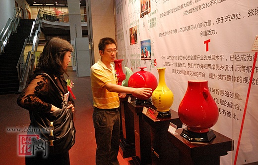 9月10日,由福建省美術(shù)家協(xié)會(huì)、廈門(mén)市文化局、福州大學(xué)廈門(mén)工藝美術(shù)學(xué)院聯(lián)合舉辦的2010年海峽兩岸優(yōu)秀設(shè)計(jì)師海報(bào)作品邀請(qǐng)展在廈門(mén)市美術(shù)館隆重舉行,大陸、臺(tái)灣、香港等一百多名優(yōu)秀設(shè)計(jì)師的作品參加了展覽。展覽大廳人群擁擠,現(xiàn)場(chǎng)熱鬧非凡。來(lái)自中國(guó)瓷都&S226;德化的福建省富貴紅文化發(fā)展有限公司應(yīng)主辦方邀請(qǐng),以陶瓷藝術(shù)品現(xiàn)場(chǎng)展覽的形式參與互動(dòng)。