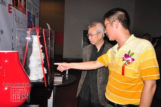 五件德化陶瓷藝術(shù)品吸引了不少設(shè)計(jì)師及到場(chǎng)的美術(shù)愛(ài)好者的駐足品鑒和攝影留念,活躍了展覽現(xiàn)場(chǎng)的氣氛。