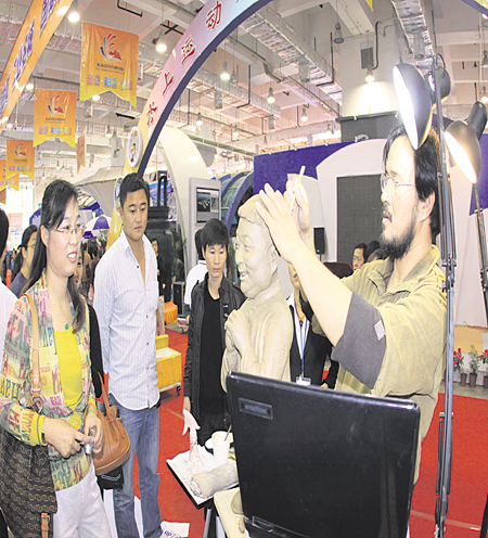 陶藝大師尹寶亭現(xiàn)場(chǎng)制作人物肖像陶藝,通過(guò)一張簡(jiǎn)單的肖像照,將人物一顰一笑表現(xiàn)的淋漓盡致,使參觀者不禁對(duì)其精湛的技藝贊嘆不已。