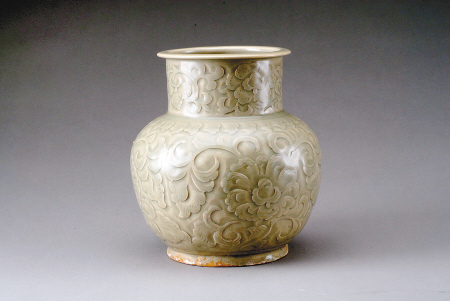 耀州窯青釉刻花纏枝牡丹紋直口尊——巧如范金,精比琢玉
