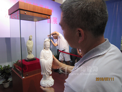 由于對何朝宗作品的癡迷,對瓷塑藝術(shù)的熱愛,每次聽到哪個博物館收藏有何朝宗的作品,哪里有何朝宗的作品展示,他都會抽空去觀看,他相信只有更深層次、更全面地了解何朝宗,才能臨摹到位并創(chuàng)作出更好的瓷塑作品。功夫不負有心人,他的執(zhí)著終于得到了回報。此次他將自己臨摹的作品在現(xiàn)場與何朝宗的《渡海觀音》做對比,作品的準確度得到了現(xiàn)場的一些專家、學(xué)者的肯定,迎來了很多媒體的競相報導(dǎo)。(蘇曉霞)