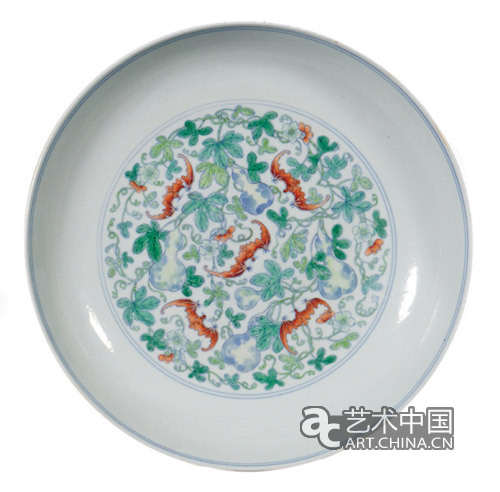 清雍正斗彩「瓜瓞連綿」五蝠紋碟