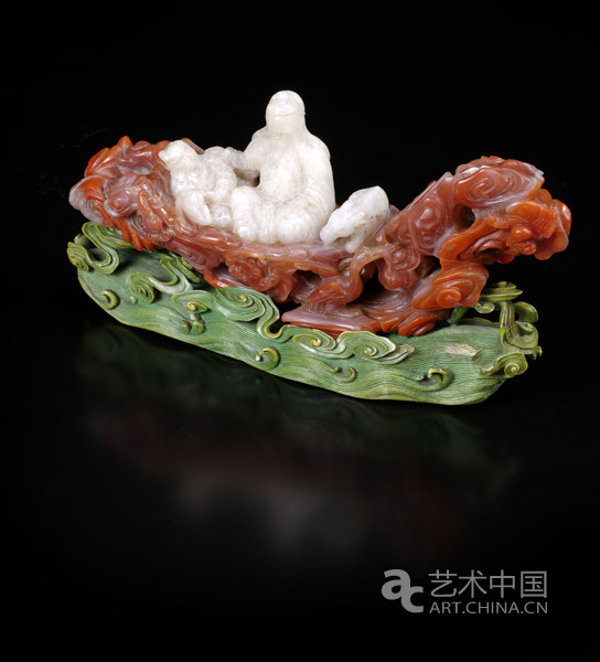 清乾隆瑪瑙仙人乘槎連染色象牙海浪座