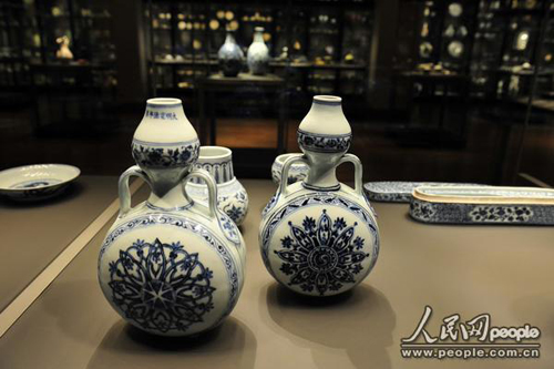 大英博物館中國館館藏的清青花扁壺 攝影:于世文