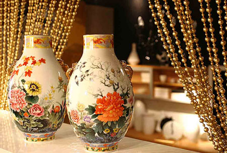 據(jù)介紹,《榮譽·輝煌》珍藏瓷由“花香五洲瓶”和“情聚中華瓶”組成,胎瓷潔白如玉、絢爛亮麗。設(shè)計緊扣奧運主題:瓶口、瓶底寬約112mm、瓶高約38cm,寓意在第112次會議上宣布本屆奧運會在北京舉行,1896年希臘奧運會與2008北京奧運會相隔112年,比賽共38大項;“金鼠獎杯瓶型”獲國家專利及版權(quán)保護(hù),寓意2008生肖“鼠”年。瓶身巧繪歷屆舉辦國的18種國花,北京等7個奧運賽區(qū)城市9種市花及五福、壽山湖海、松竹梅等吉祥元素,寓意“花開富貴、五福臨門、福壽延年、平平安安、團團圓圓、平步青云、財源廣進(jìn)……”而且,《榮譽·輝煌》珍藏瓷成品先后4次入窯,經(jīng)72道大小工序。全手工完成揉泥、切泥、拉坯、利坯、接耳朵、吹釉、燒窯、繪畫等過程。胎瓷通透如玉,胎面如有凝脂,完全超越絕其它普通紀(jì)念瓷。在粉彩、新彩和鎏金等工藝中更是精益求精,集合了色上色、色套色等高難度上色技藝,其難度和精細(xì)度堪稱瓷中一絕。