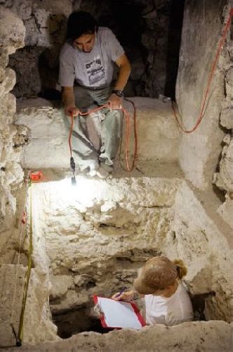 來自德克薩斯大學考古項目聯(lián)合負責人埃德文-羅曼和布朗大學研究生薩拉-鈕曼正在通往墓穴的通道中繪制墓墻的輪廓。德克薩斯大學中美洲藝術學教授大衛(wèi)-斯圖亞特認為,這一驚人的發(fā)現以及墓穴中史前古物驚人的完好程度,在某種程序上帶領我們走向了瑪雅考古學的新方向。(彬彬)