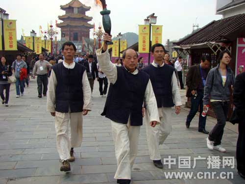 一名老窯工在兩名窯工的陪伴下走進(jìn)佑陶靈祠內(nèi)采集火種,之后將火種交與景德鎮(zhèn)副市長(zhǎng)盧正大點(diǎn)燃了圣火。圣火火炬被再次分成幾把交與圣火隊(duì)開始了從御窯場(chǎng)到中國(guó)瓷園“瓷業(yè)三圣“公祭儀式的接力長(zhǎng)跑。景德鎮(zhèn)沿途圣火接力隊(duì)所經(jīng)之處受到了市民們的熱烈歡迎。
