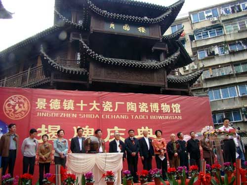 10月19日下午,位于江西省景德鎮(zhèn)市風(fēng)景路55號的景德鎮(zhèn)“十大瓷廠陶瓷博物館”所在地龍鳳閣門前,張燈結(jié)彩,鞭炮聲聲,景德鎮(zhèn)“十大瓷廠”陶瓷展在這里隆重舉行。