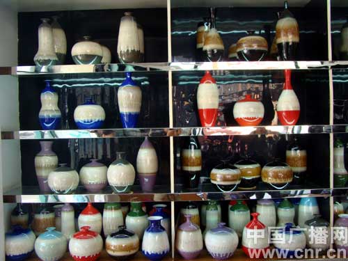 記者摸著幾種造型各異,光滑鮮艷的裝飾藝術瓶,手感十分舒適,看上去就像玻璃與琉璃的效果那樣亮麗,且顏色從鮮艷到漸變,產生了不同過度色的獨特效果。問起二人今后的打算,二人你一言他一語的說道:我們今后想往實用性上發(fā)展,要爭取在器形、釉色等方面創(chuàng)新的同時加上實用性的因素,燒出一些自己認為滿意的東西來,雖然難度有但我們有信心做下去……