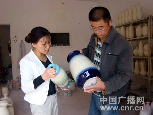 為了進一步了解陳新初這對夫婦兩年多來對自己刻意經營的陶瓷產品的發(fā)展,10月20日上午,記者如約來到了他們的工作間。陳新初、黃國珍夫婦也較為詳細地跟記者說起了他們自己的故事。陳新初向記者說:幾年前他們夫婦都是景德鎮(zhèn)國營陶瓷廠的下崗職工,然而,下崗后經過一番挫折和努力終于又干起了老本行。但即使干老本行也是逐漸在摸索中一步一步走過來的,其中的酸甜苦辣都也都嘗試過了,就像眾多的景德鎮(zhèn)下崗職工一樣,最終靠著自己的追求和努力,干出了自己的一番小天地。
