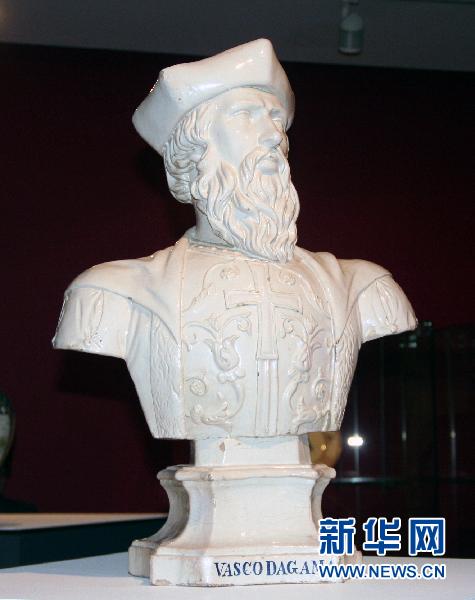 2010年10月20日 19世紀(jì)葡萄牙瓷器精品展開(kāi)幕這是10月19日在葡萄牙里斯本瓷磚博物館拍攝的葡萄牙航海家達(dá)伽馬的陶瓷像。當(dāng)晚,葡萄牙19世紀(jì)瓷器精品展在里斯本瓷磚博物館開(kāi)幕,共展出178件19世紀(jì)后期燒制的各類(lèi)精品瓷器。葡萄牙人鐘愛(ài)瓷器,這里的瓷器燒制已有數(shù)百年歷史。