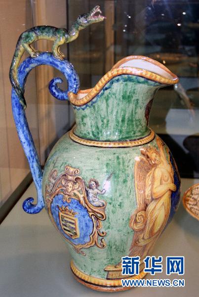2010年10月20日 19世紀(jì)葡萄牙瓷器精品展開幕 這是10月19日在葡萄牙里斯本瓷磚博物館拍攝的一件精品瓷器。當(dāng)晚,葡萄牙19世紀(jì)瓷器精品展在里斯本瓷磚博物館開幕,共展出178件19世紀(jì)后期燒制的各類精品瓷器。葡萄牙人鐘愛瓷器,這里的瓷器燒制已有數(shù)百年歷史。新華社記者童炳強(qiáng)攝