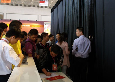 蒼勁奔放的音樂(lè)扣人心弦,隨著音樂(lè)聲的升高,一束綠光投在關(guān)閉的黑紗門(mén)簾上,一個(gè)高挑曼妙的身影投在紗簾上,動(dòng)人的現(xiàn)代魅舞表演穿插在瑪緹瓷磚展示過(guò)程中。參展的客商、媒體、同行,無(wú)一不對(duì)“瑪緹現(xiàn)象”嘖嘖稱(chēng)奇、夸贊。“很神秘,瑪緹真的很有創(chuàng)意很特別呀”進(jìn)來(lái)看磚的客商直言道。充滿(mǎn)創(chuàng)意的瑪緹展廳,成為了華夏陶瓷城所有展位里人氣最旺的一個(gè)展廳,一撥一撥的客戶(hù)掀簾而入。