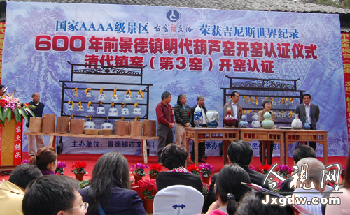 10月22日上午,景德鎮(zhèn)明代葫蘆窯和清代鎮(zhèn)窯(第3窯)復燒開窯認證儀式在景德鎮(zhèn)古窯民俗博覽區(qū)隆重舉行。全國政協(xié)文史和學習委員會副主任鐘起煌與眾多領導嘉賓及參加第十次地方網(wǎng)聯(lián)會議的代表一起見證了這一激動人心的時刻。