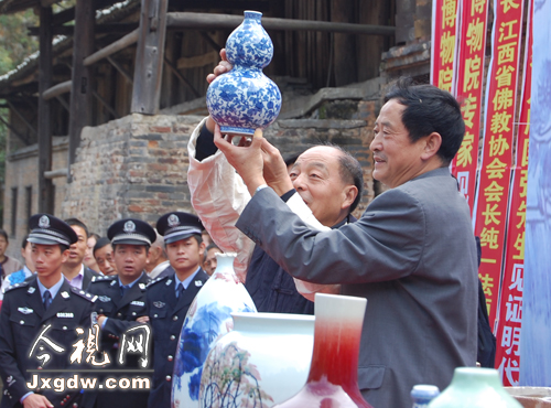 認證儀式上,古窯民俗博覽區(qū)還向北京故宮博物院、臺北故宮博物院贈送復燒出窯的明清古瓷的復仿制品。