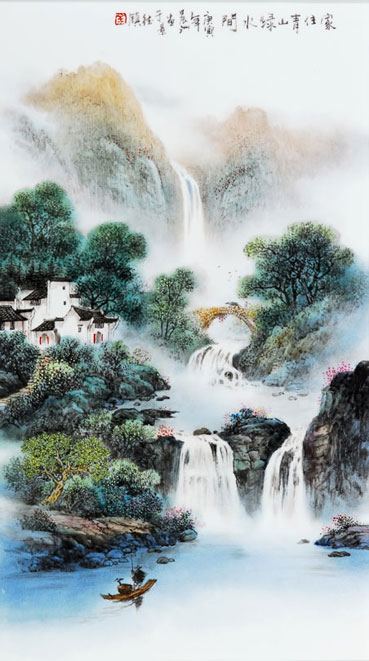 光影青花藝術創(chuàng)始人汪吟泉的青花山水, 在傳統(tǒng)的青花畫法上吸取西洋畫的光影透視, 以其“釉下填白光影青花”技法, 創(chuàng)作出“雪”,“雨”, “夜”三景, 開創(chuàng)了一個青花繪畫新樣種,受到廣大藏家的歡迎。